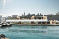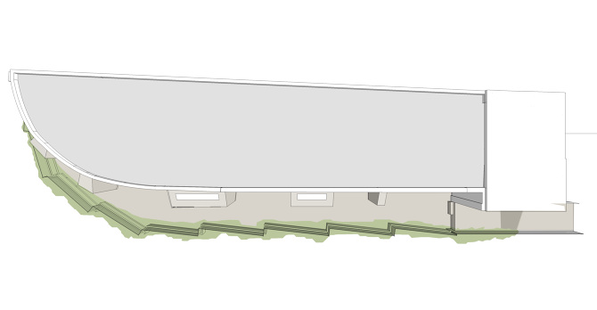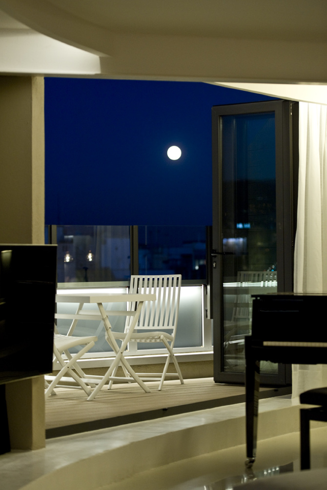 The terrace can be lit through two lines of LED, one place hidden in the existing part of the railing; the second on the top part of the facade, underlining the curved shape of the building.