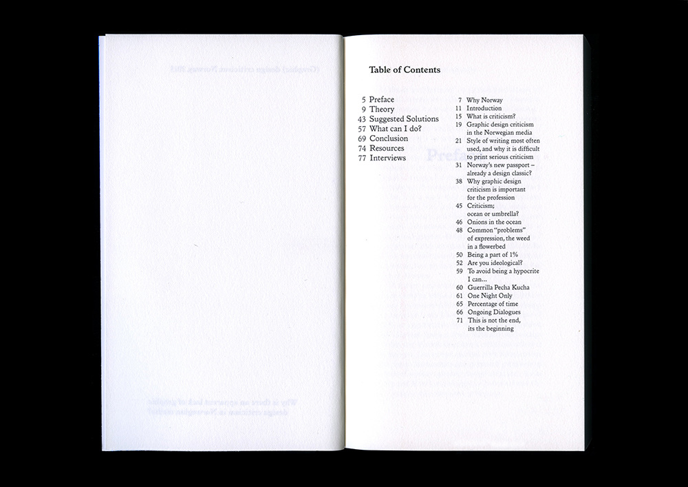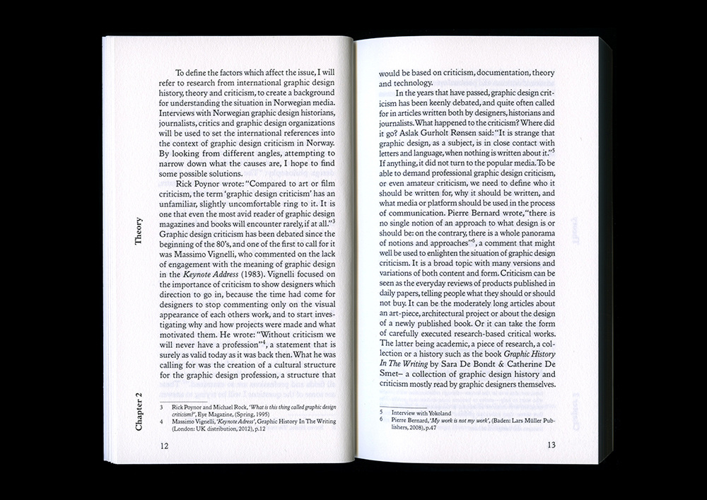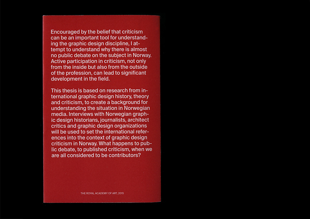 Encouraged by the belief that writing can be an important tool for understanding the graphic design discipline, I attempt to understand why there is almost no public debate on the subject in public media in Norway.