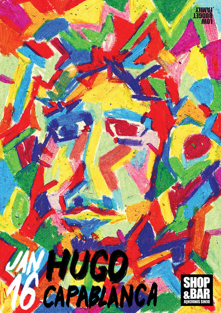 Poster for Hugo Capablanca, a charismatic and unorthodox DJ and producer. I used oil pastels to make this bright and colorful poster.