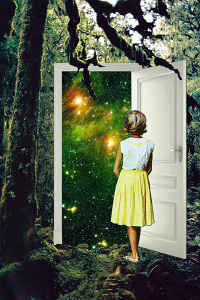 The second level is about expanding our horizons further, making the leap towards an enlightened state . Notice the woman in black, ready to make the leap. The man in the staircase, calls her, trying to keep her back, but it's too late. She has superseded him. She is intrigued by the possibilities. The man also signifies the various forces that will try to keep humanity back on its journey. Notice that the observable universe is also within the boundaries of the structure.
