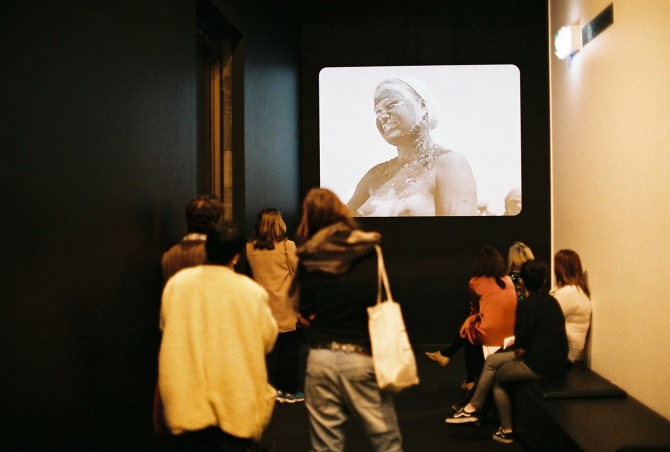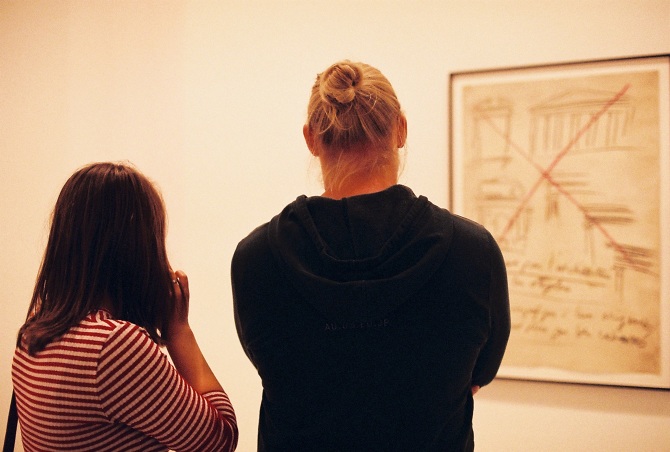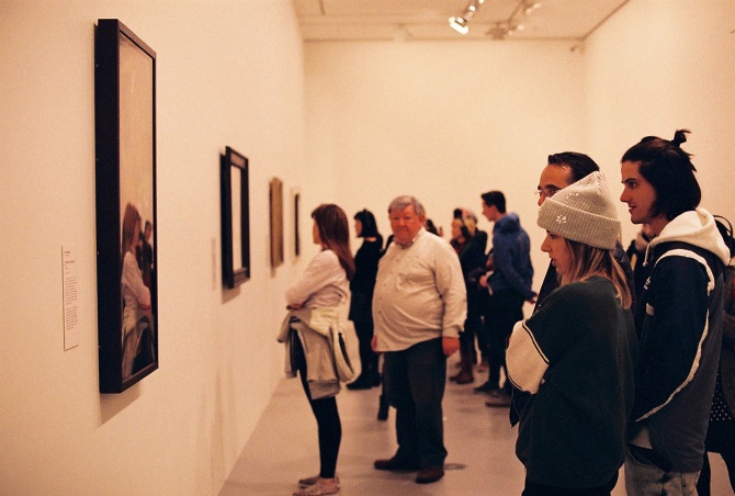 Visitors at the MoMA exhibition at the National Gallery of Victoria