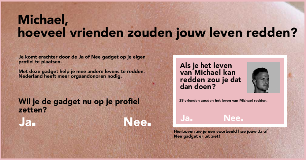 The Hyves gadget is an extension of the national campaign called ‘Yes or No’. It reached out to the almost ten million users of Hyves asking them if they would save the life of a loved one.
