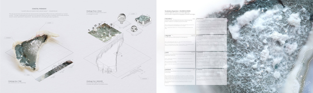 What the fungi teaches us is that our representation of the world is limited, divisive, and subjective. Our sense organs act to constantly cleave things from an undifferentiated medium. Our powers of perception fumble to see the unmediated SpaceTimeEnergyMatter continuum through which we exist. Here, in the undifferentiated medium, there are no islands, no binaries, no edges, no objects, no beholders, no life, no death. At stake is our isolationism, at all levels and in all forms. The way we perceive and describe the natural world consequently effects how we understand our human society. To see differently allows us to think differently. Through increasing our vocabulary of edges and challenging the existence of an absolute island, we seek to question other binary divisions: racism, sexism, speciesism, isolationism. Boundaries blur and walls give way to gradients.