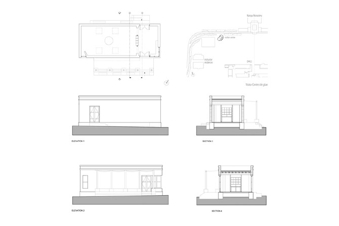 Upon entering the Visitor Centre, guests are greeted by a large corner window with a view to the Naropa Monastery and the spectacular mountain range surrounding the valley. A custom-made cabinet that draws upon traditional Ladakhi furniture styles acts as a semi-transparent partition between the entrance and the gallery space; which will hold Ladakhi artifacts, information on the school, and student artwork. Guests entering the gallery are greeted by the light of four skylights, which illuminate the hand-made mosaic inlayed into the floor. The back wall of the gallery is daylit using a "wash wall" technique in which an extruding, angled partition helps to bounce light far into the space.