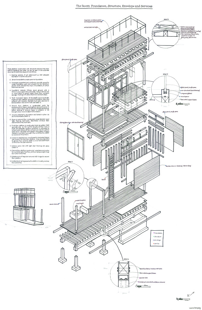 THE ROOMThis project involved the design of a "room" for a single person, with an interior size limit of 20 square meters. The room was to provide a place for sleeping, for reading, as well as a hearth.