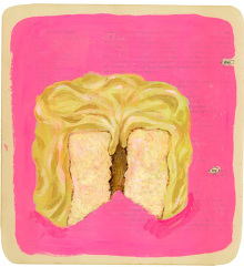 Artwork for a show curated by ZIO Fulcher for the Scion Art Space Los Angeles. I painted 134 different foods from cake to McDonald's hamburgers on vintage cookbook...