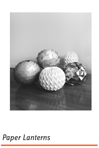 Different variations of folded and cutted lanterns made with gold, silver and white paper. Roles: Concept, design and production.