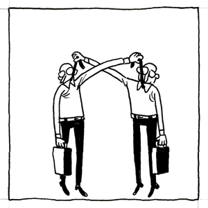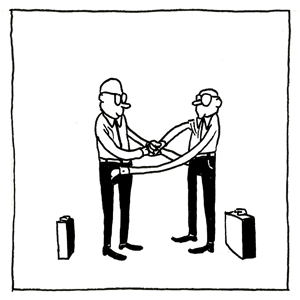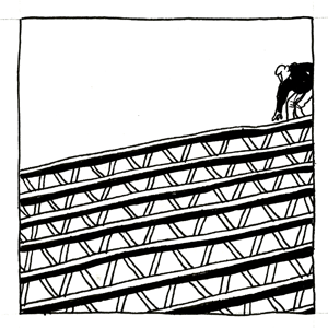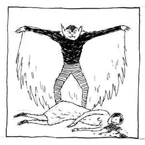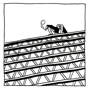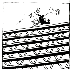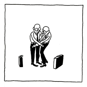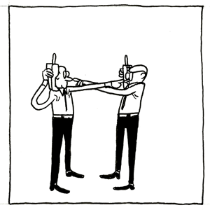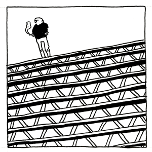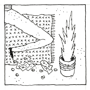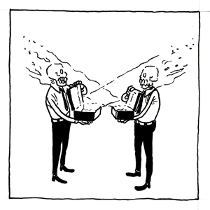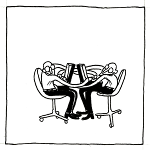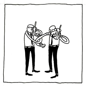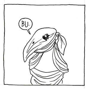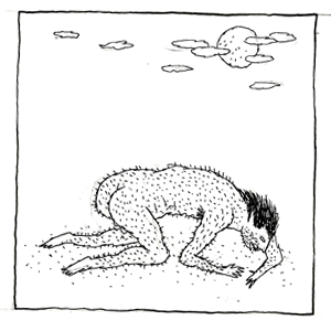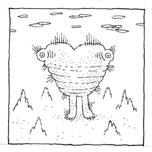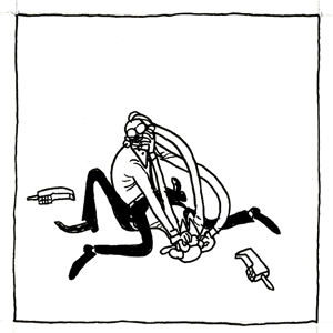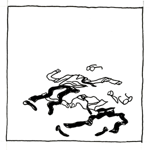 We decided to do 1000 drawings in five days. The drawings would be should (very cheap) on the internet, in envelopes of five, ten or 50. The buyers wouldn't know which ones they bought till they got them home. The order of the buyings would create the story, published in a website.