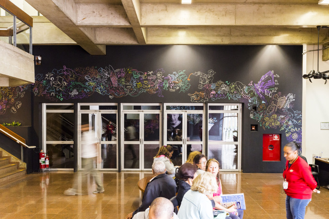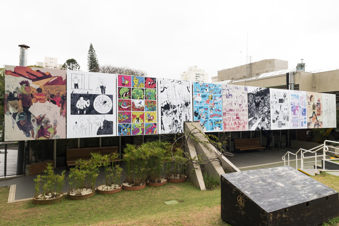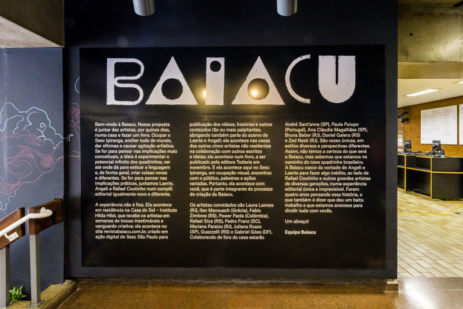 Baiacu was a multidisciplinary project, coordinated in three fronts: the occupation of a Sesc building, with murals, workshops, talks and more; a residency program of 15 days of artistic production with 10 artists from Brazil and abroad and 5 collaborators working remotely; and a book publication with the materials developed in the residency, an experimental view of the comics possibilities. The artists involved: Mariana Paraiso, Laura Lannes, Power Paola, Juliana Russo, Fabio Zimbres, Rafael Sica, Pedro Franz, Eloar Guazzelli, Ilan Manouach and Gabriel Góes. Out of the house: André Santanna, Ana Paula Magalhães, Paula Puiupo, Daniel Galera and Diego Gerlach. The project was made in partnership with Sesc São Paulo and Editora Todavia.