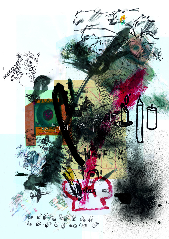 Five poster to the play "FIM" - Directed by Felipe Hirsch