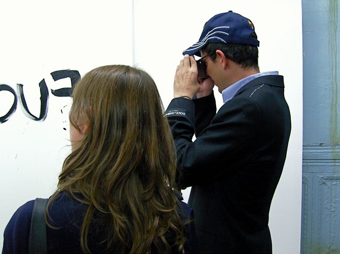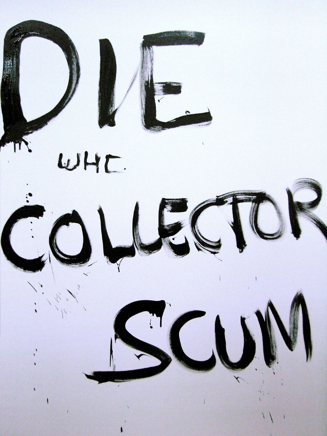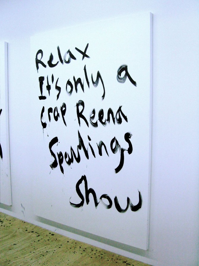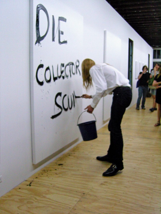 Merlin Carpenter's institutional critique painting performance at Reena Spaulings NYC, 2008.