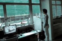 Vision d’un ordinateur avec mini projecteur intégré. L’interface peut être projetée sur n’importe quelle surface. Des capteurs dissimulés dans le creux...