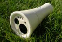 Vision d’un appareil photo numérique dont la forme n’est pas sans rappeler celle d’une longue vue ou d’une lampe torche. Les photos peuvent être...