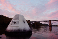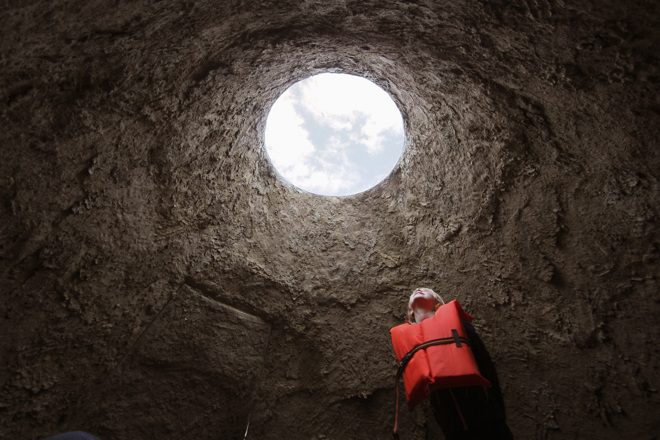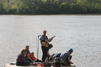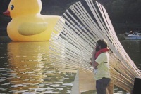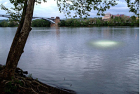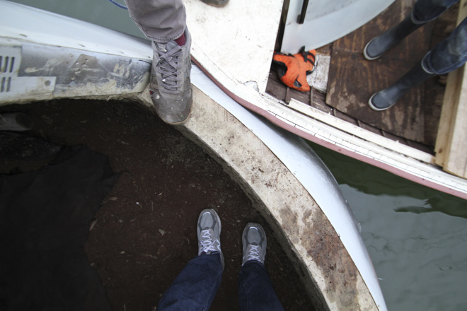 Visitors were asked to rendezvous beneath a bridge where they could board a small boat and be ferried out into the river to enter the Azimuth observatory. Ferry operations occurred just before sunset to midnight. Overnight and during the day, the observatory was left anchored in the river. Deployed throughout the first week of October 2012 for the VIA Music & New Media Festival. Stay tuned for future opportunities to encounter Azimuth.