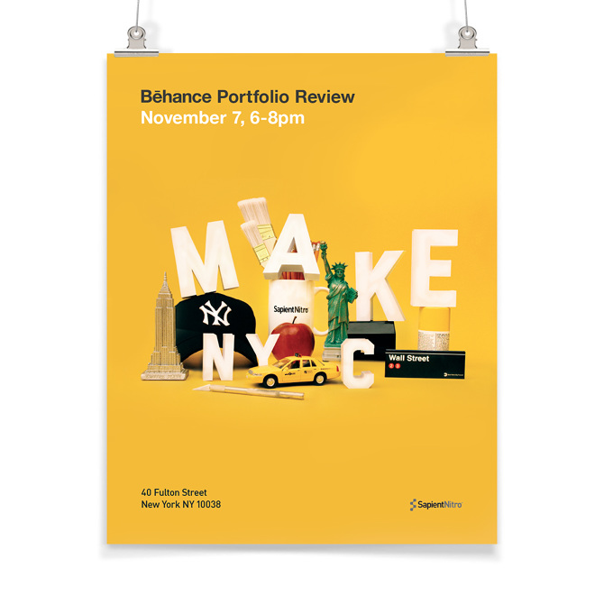 For the poster, handmade cut-outs of letters were created and arranged in a way to showcase NYC as a destination hub for creative talent.