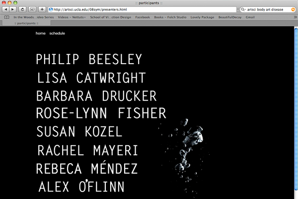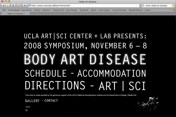 Body Art Disease was a media art show and lecture series curated by Stefanie Adcock. The show invited many media artists, filmmakers, architects, and photographers to show their work and speak about the human body and its transformations. The pieces in the show ranged from street projections to fashion design. I wanted the website to reflect the darkness of the show, as well as the feeling one may have while inside the human body.