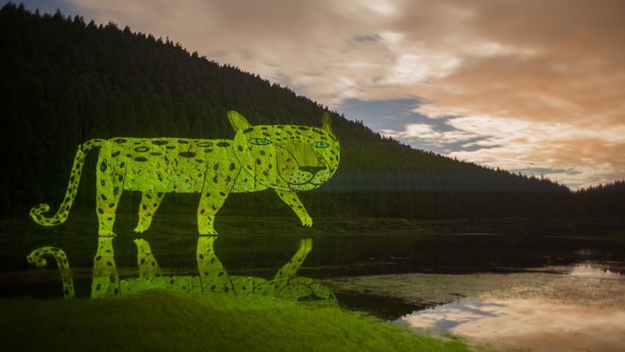 Taking advantage of the beauty of local nature, we projected animations in different spots of the island as the Lagoa das Empadadas, Porto da Ribeirinha, Cachoeira do Cabrito and Lago Verde in Sete Cidades.