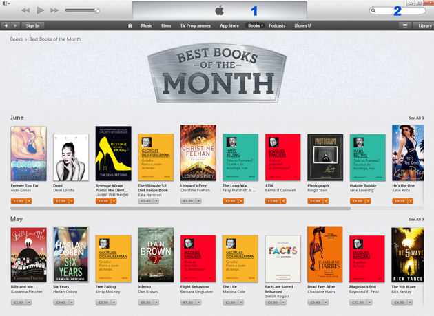 Com a instalação do leitor iBooks, passa a poder aceder à iTunes Store por esta via.