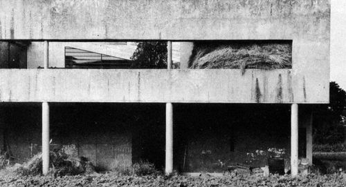 The Villa Savoye as a cow shed with hay, ca. 1950ies.