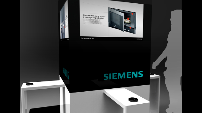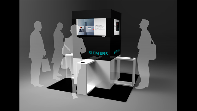 Interactive Kiosk Installation proposal for Siemens supported on a four screen sided structure interaction.