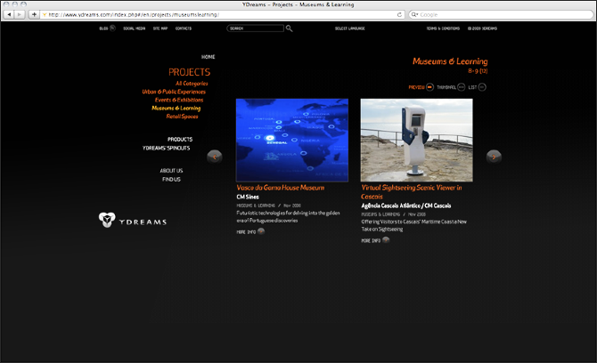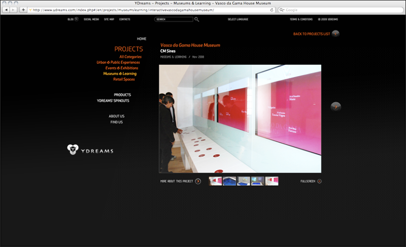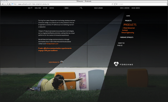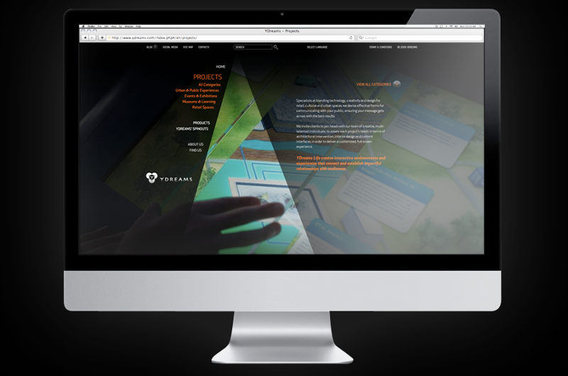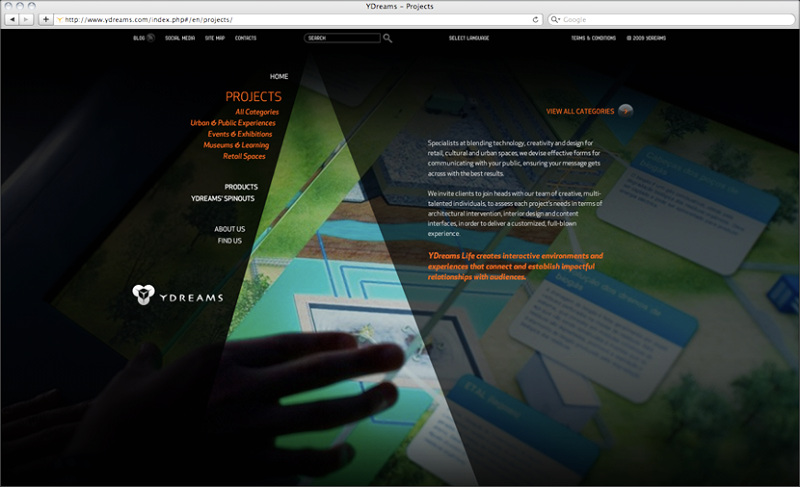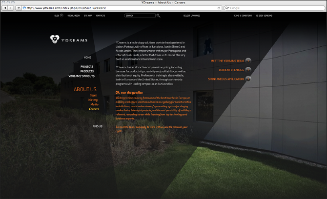 User interface and experience design of the Ydreams's website, as well as implementation coordination.