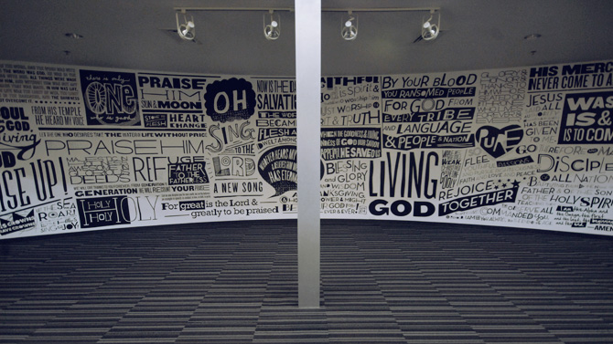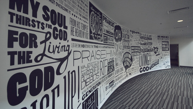 Handdrawn typography environmental graphics for