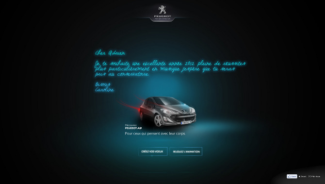Using the body langage and the impression of speed using live light painting. Dancers have performed in a studio to draw a wide range of light painted letters and gestures while tipping their wishcard