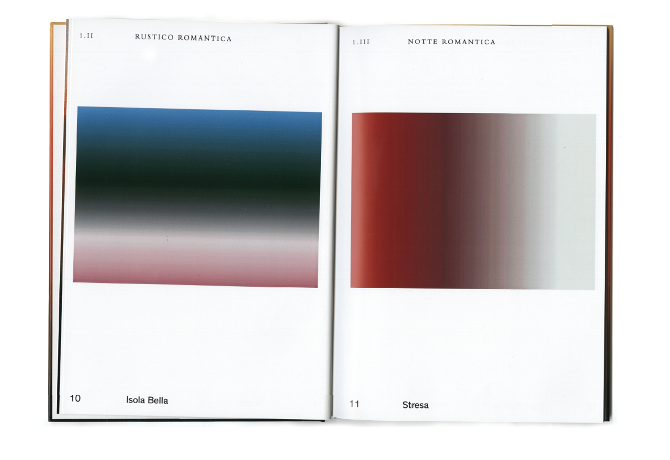 ROMANTICO – Shows the only true thing about romantic: Color-gradients. Based on the Book "Romantico Lago Maggiore" this new interpretation shows all the pictures of the original publication only as gradients. Done with the great help of