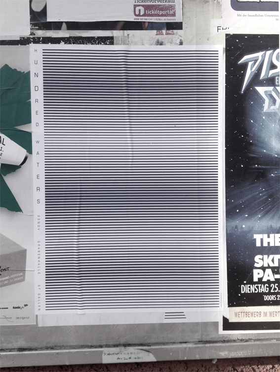 HUNDRED WATERS – Poster Design for the Concert of Hundred Waters at Grabenhalle St.Gallen. One hundred lines are symbolizing the water surface