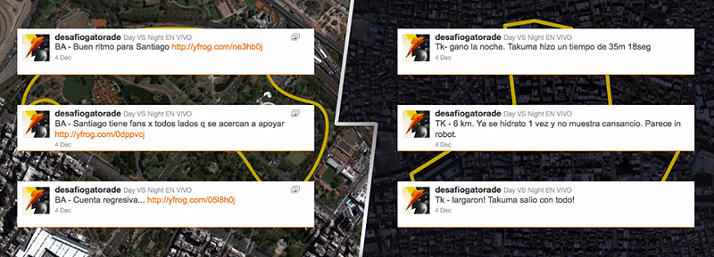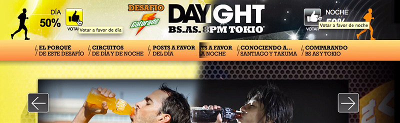 We introduced the Day and Night flavours and the Day vs Night challenge: two sides of the same coin. The Challenge: Santiago Amigo (Buenos Aires) and Takuma Takei (Tokyo); facing off in a race at the same moment in time. One running during the day the other at night. Via a digital platform people could support them. Thousands of runners responded sharing feelings and views on day and night running, and turned to Gatorade day and night flavours while training. The Day and Night insight was transformed into a product and a content platform to be consumed, lived and amplified.