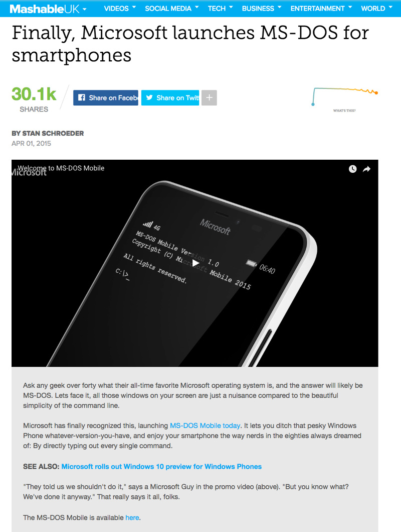 In order to support and amplify the 2015 April’s Fool prank from Microsoft Lumia, the launch of a 100% mobile version of their very own MS-DOS, we crafted a very retro special gift for influencers and journalists to give them the chance to have the first try to this funny and innovative app. And we did it in the same way things used to work back in the days, of course…