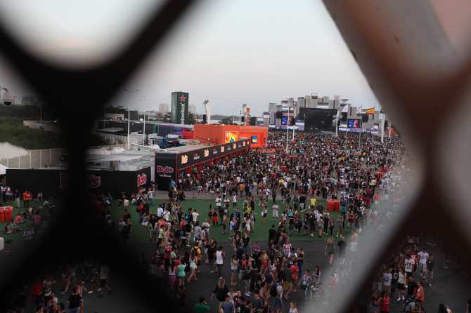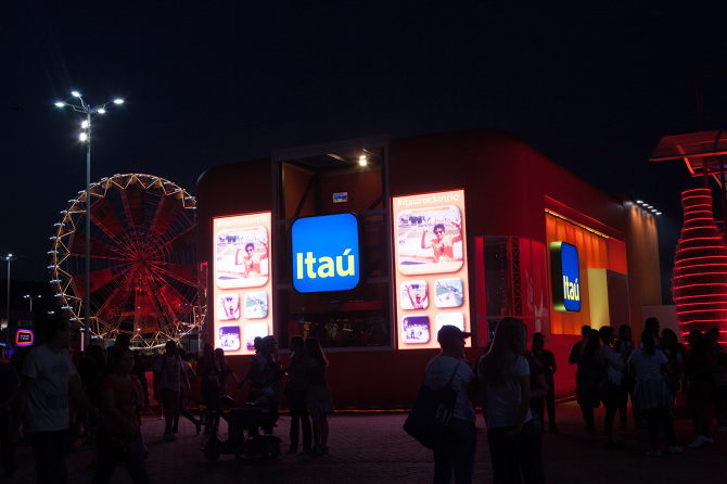 Fechando a ativação do banco com chave de ouro, o Itaú iluminou a cidade do rock com milhares de pulseiras laranjas piscantes.