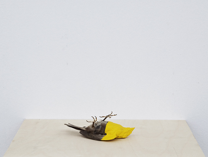 acrylic on stuffed bird
