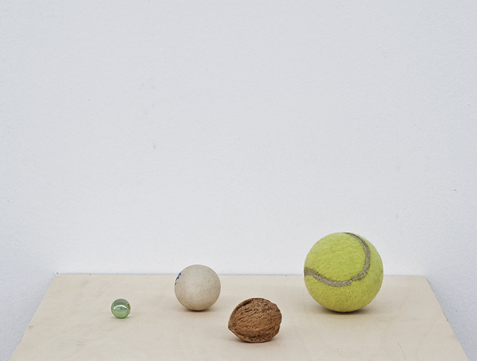 marble, ping pong ball, walnut, tennis ball