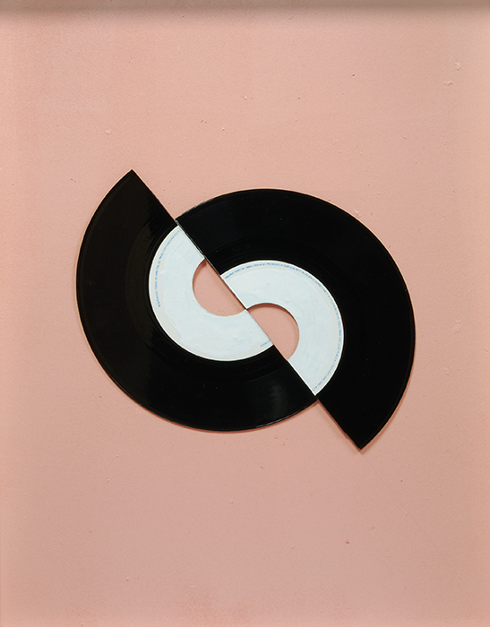 acrylic on cardstock, enamel on vinyl record