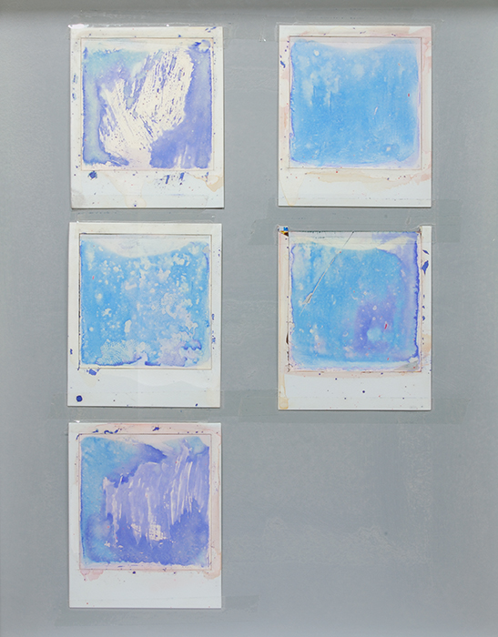 acrylic on cardstock, aquarelle on Polaroid 600 instant film (5 elements)