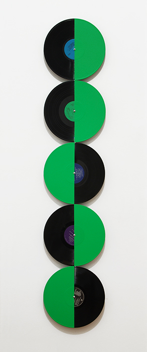 primer and acrylic on vinyl records, aluminium structure