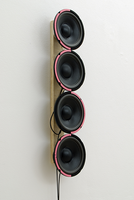 acrylic on speakers, wood, amplifier, mp3 player