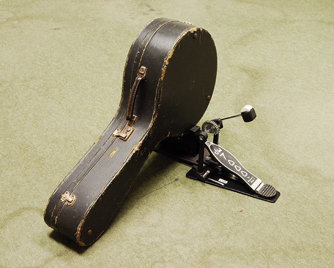 Portuguese guitar hard case, bass drum pedal, wood, aluminium