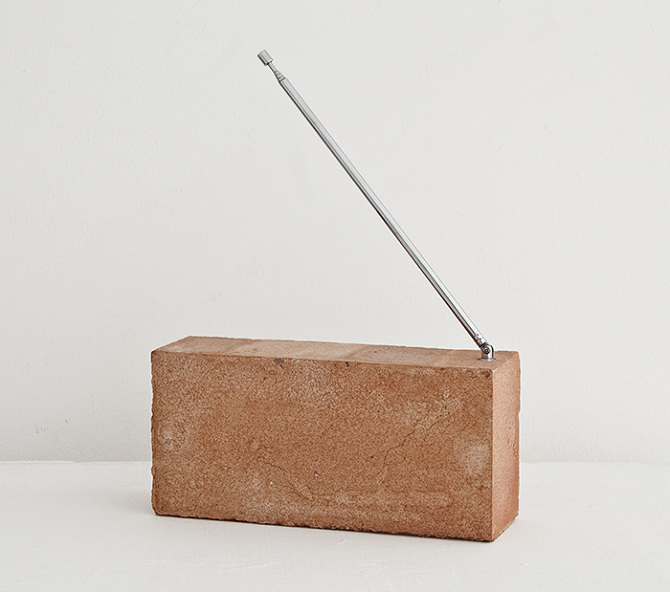 trolley, amplifier, acrylic and tape on speaker, radio, elastic rope, triple plug, charger, electrical extension, audio cable, audio plug