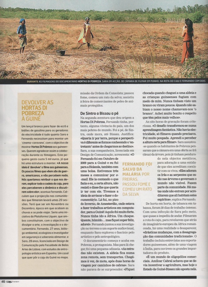 # 19-08-2011 - “Na Rota do Caju”, entrevista de Leonor Figueiredo à equipa LIQUEN sobre a produção Hortas Di Pobreza. Publicada na Revista Caju em Agosto 2011