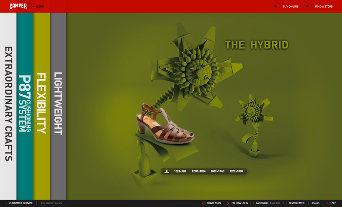 My role: I lead the project production and its Camper's flash platform integration. I also Art Directed AW2010 and SS2011 season microsites, while the SS2010 season was art directed by SwingSwing. Xarxa Studio executed the Flash deployment.