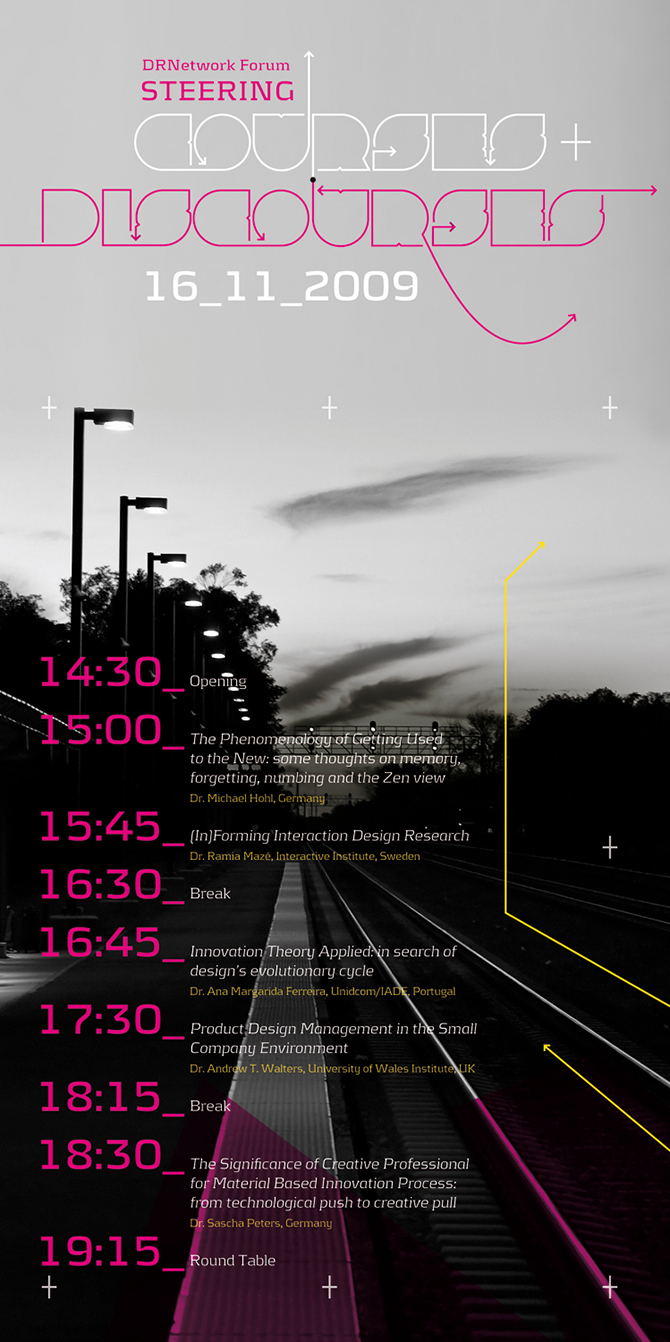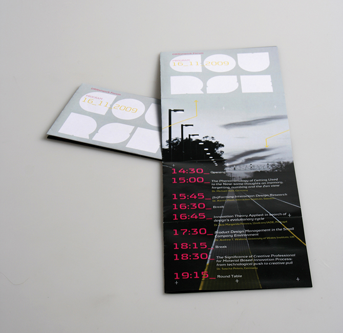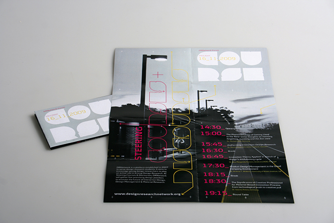 EN_These were the designs I did for the Design Research Network conference Steering Courses & Discourses. Everything was on a minimal budget and I had to make due with what was available.