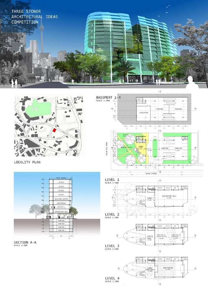 This scheme is an entry to The Three Stonor Architectural Ideas Competition held by PAM (Pertubuhan Akitek Malaysia, Malaysian Architects Association) in 2010. The entry, awarded Honorary Mention, was submitted jointly by Pasagi Designworks and ASK Sdn. Bhd.
