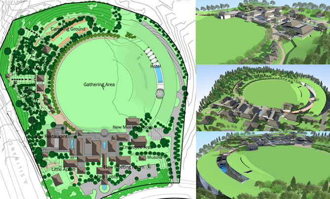 The hotel was planned as a land-scraper that blends with the terrain to complement and enhance the existing bowl-shaped land-form and the mountains in the background.