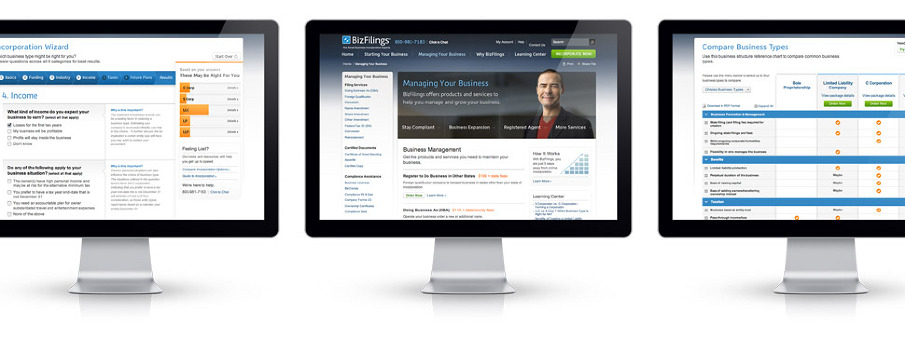 Additionally we introduced new ways for the customer to understand the different types of incorporation available to them, through online wizard and comparison tools. And increase sales for the client by streamlining the product selection and checkout process.