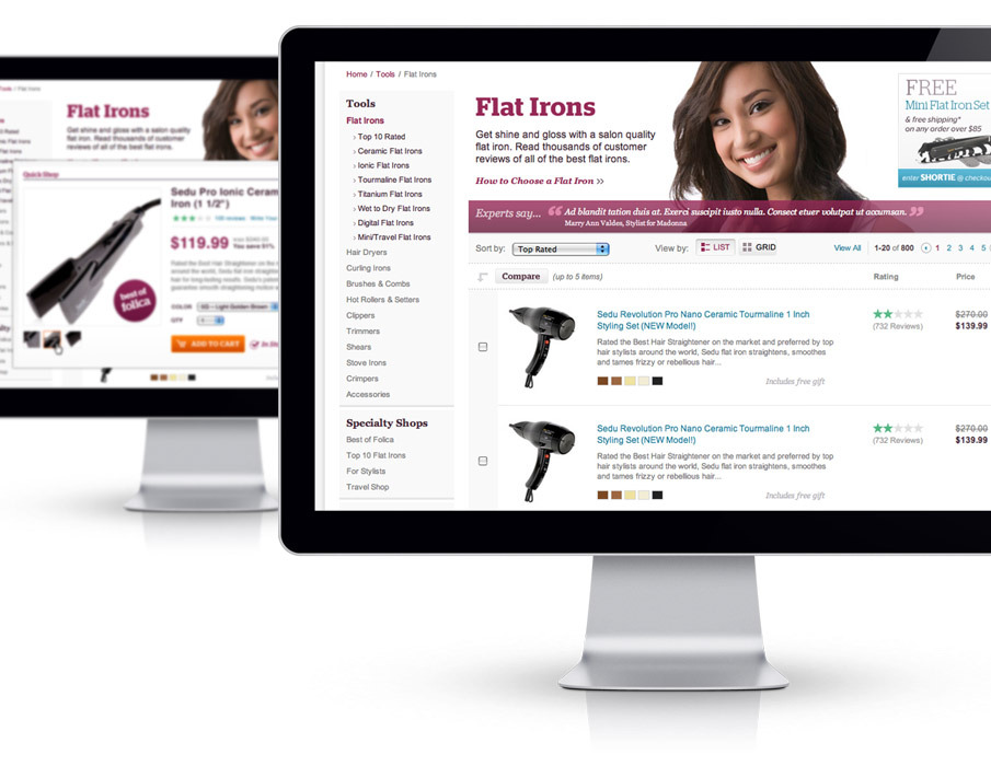 We also introduced new ways to shop - such as "Shop by brand", "Shop by hair type" and enabled extensive customer and expert reviews of products to help not only customers but Folica understand what the market values.