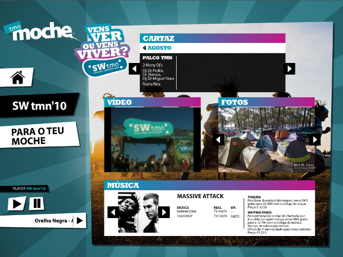 Users, while charging the phone battery, could access the area of information of the festival and a content area for mobile phones.