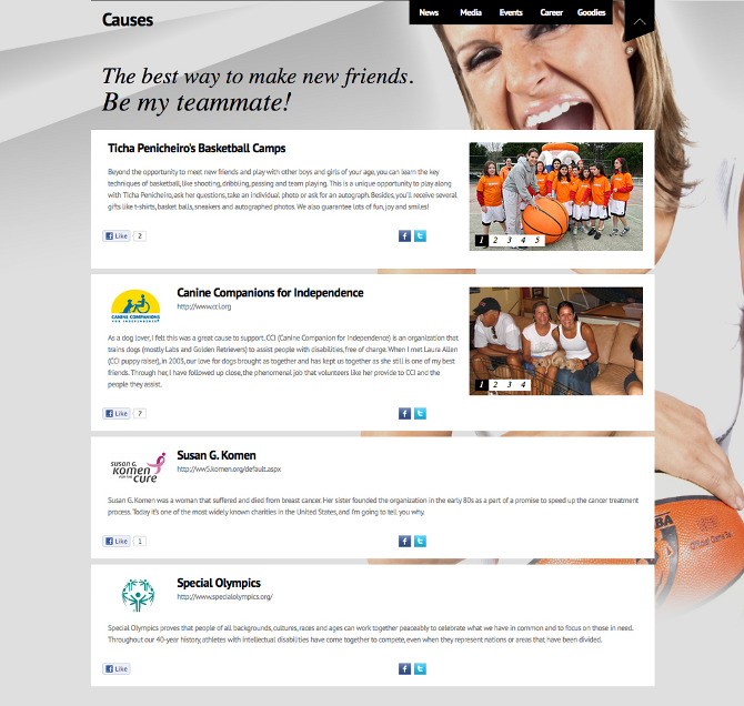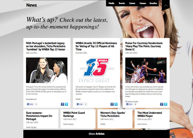 Design of the new website and identity of Ticha Penicheiro is one of the top 15 WNBA players in history. TP21 official site reveals her personality.
