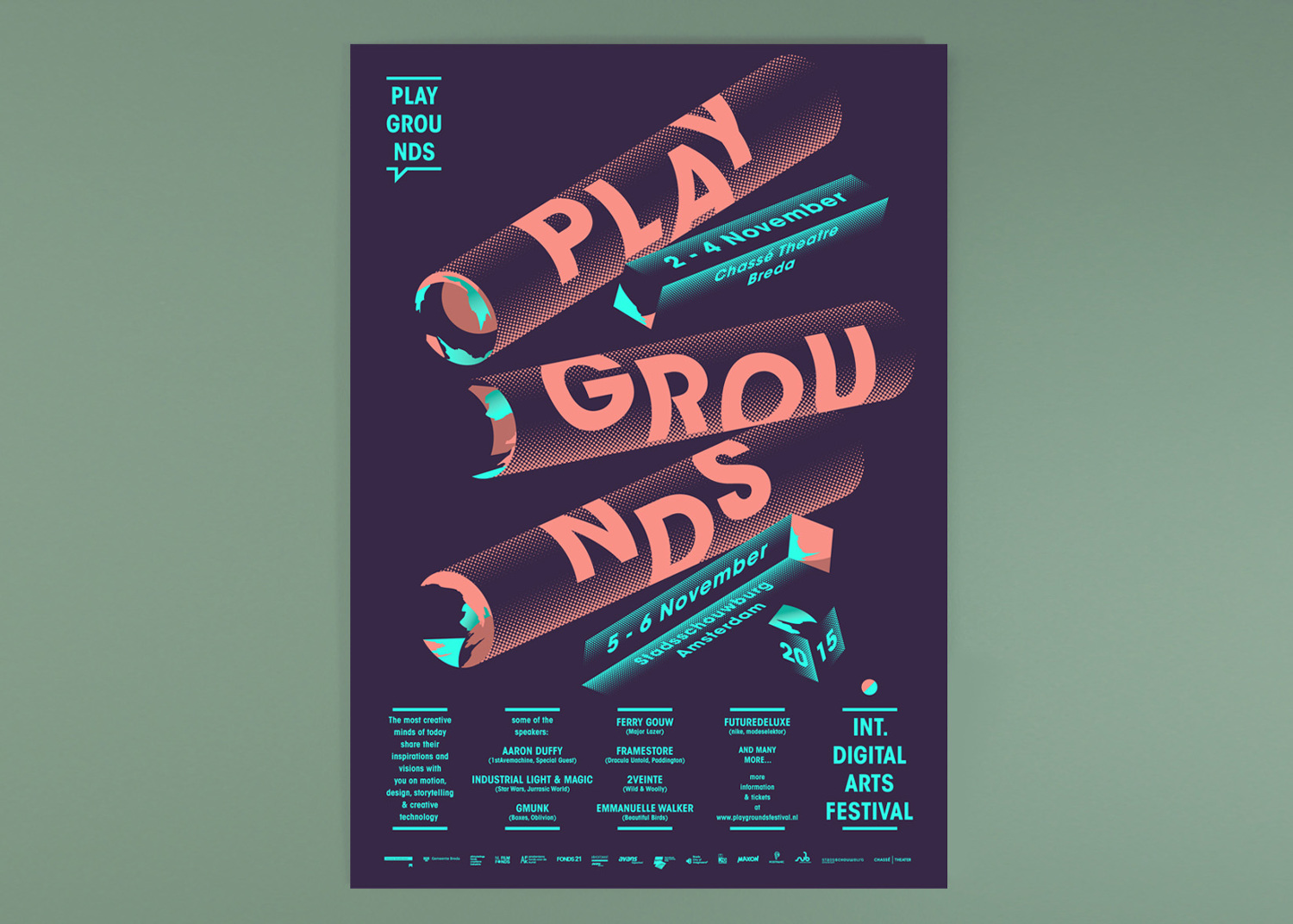 10 / 11 – Visuele identiteit voor het Playgrounds digital arts festival. Visual identity for Playgrounds digital arts festival.